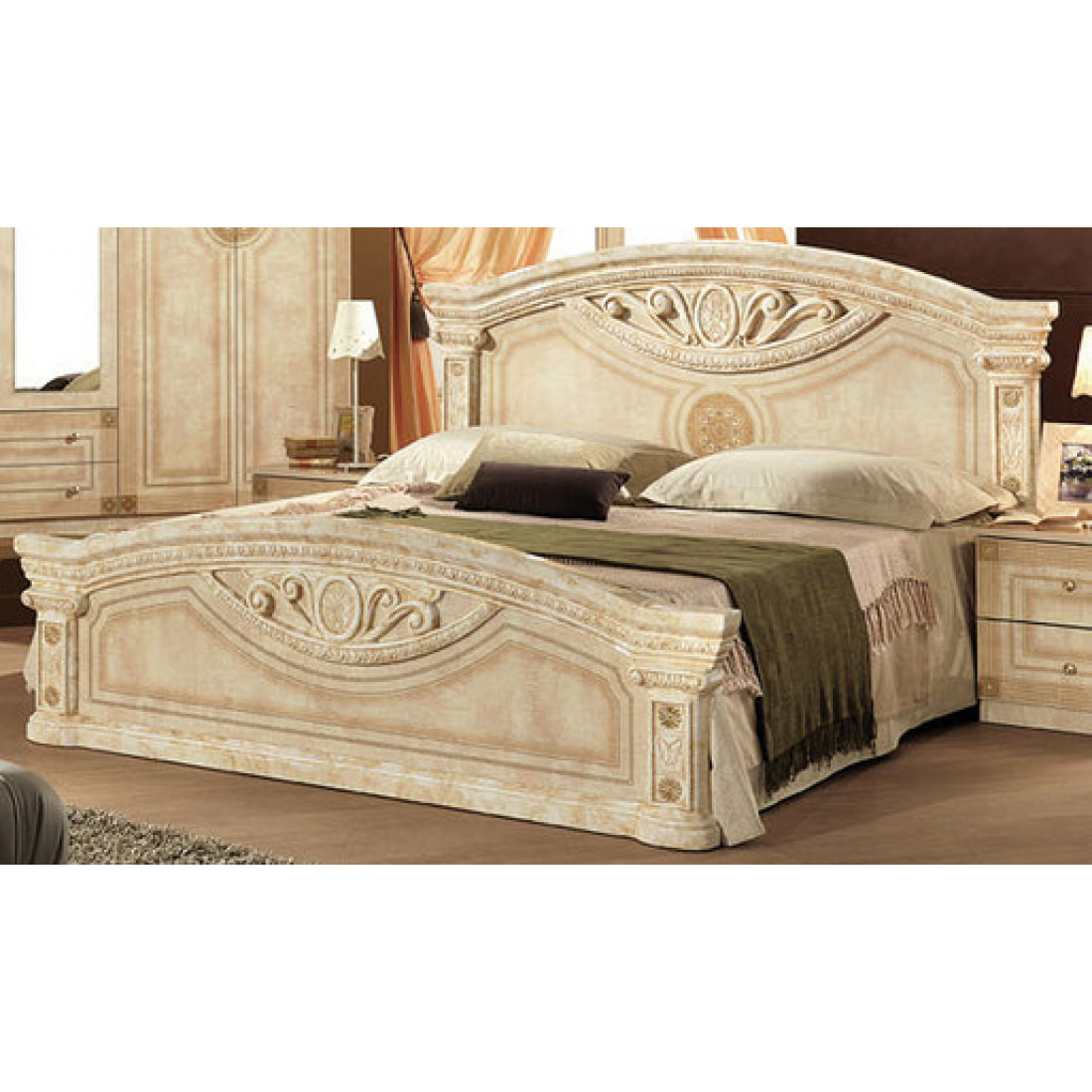 Двуспальная кровать Рома (беж) от Российской фабрики «ДИА мебель» выполнена в строгом, классическом стиле. Бежевый цвет в сочетании с глянцевым покрытием придает элегантность. Такая большая, просторная кровать поможет вам забыть о проблемах и окунуться в сладкий сон. Она поможет почувствовать себя свободным и непринужденным, будет не обходимым модулем в вашей спальне. Вся коллекция "Рома" предназначена только для истинных ценителей элегантного классического стиля.