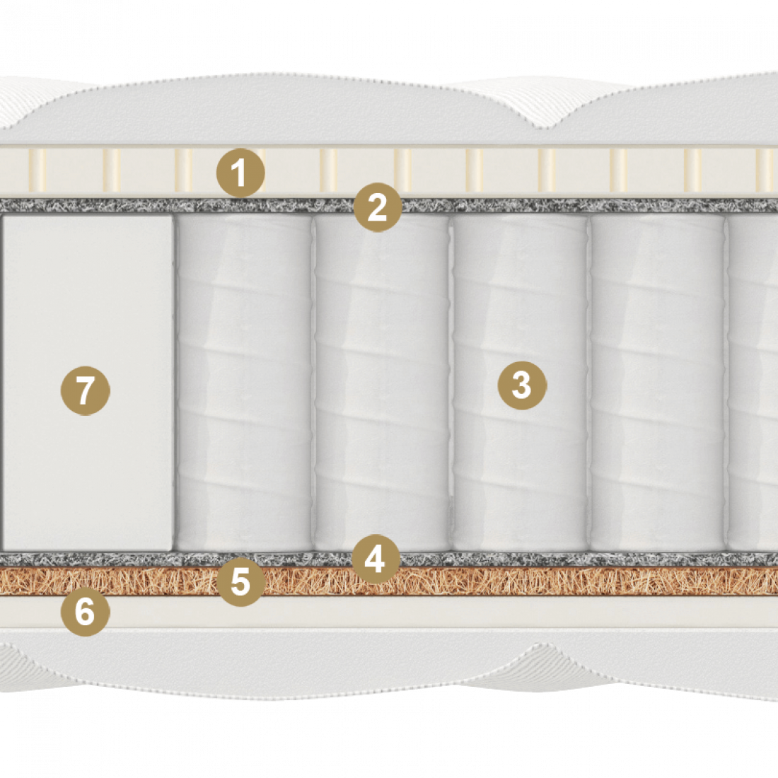 С одной стороны матраса, натуральный латекс прекрасно пропускает воздух, благодаря этому достигается оптимальная температура спального места. Материал долго не утрачивает свои эластичные свойства, а значит, матрас прослужит вам не один десяток лет. Данная сторона ощущается как умеренно мягкая.