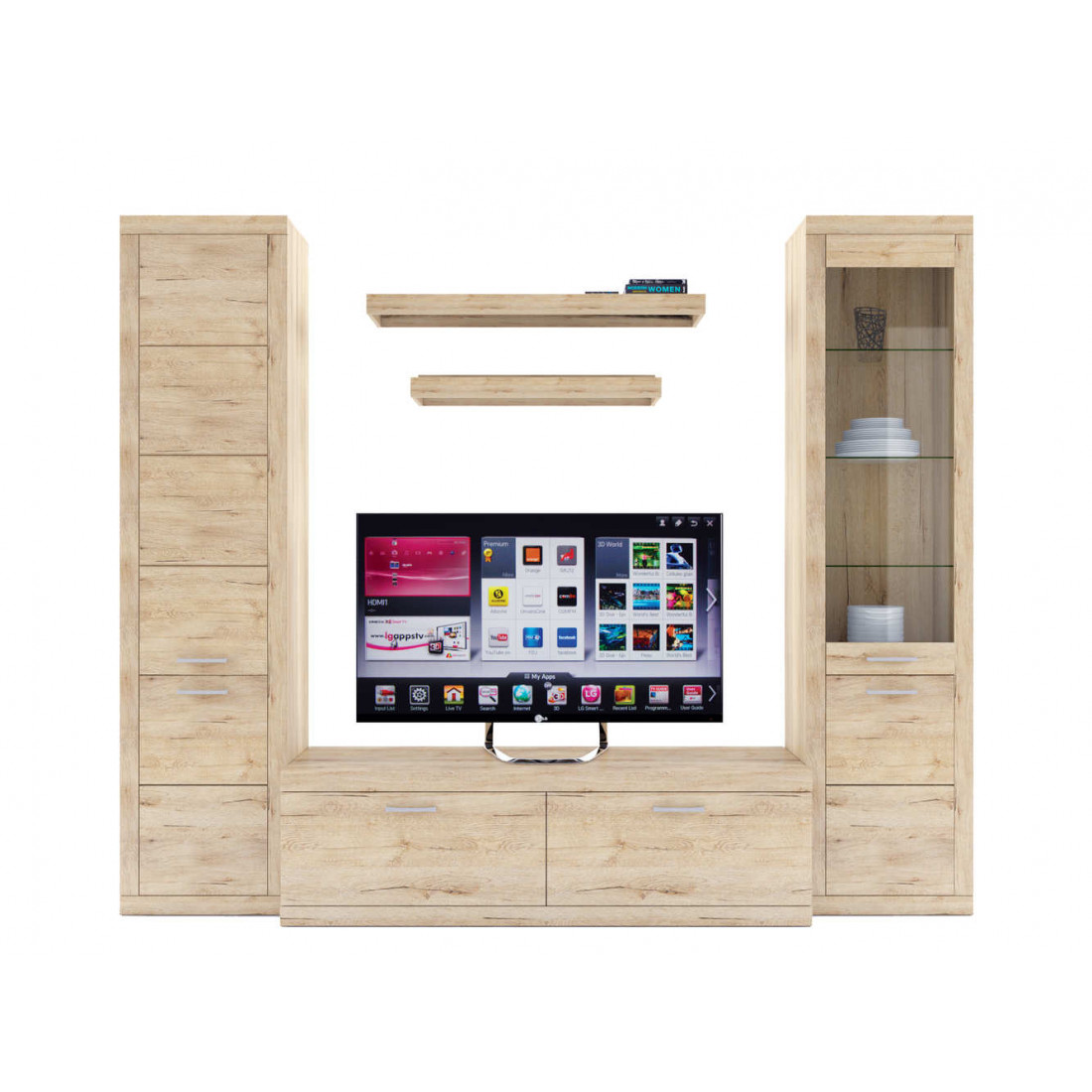 - 4 варианта тумб RTV с выдвижными ящиками на шариковых направляющих. 2 размера надставных полок для RTV-тумб (полка TVB и полка TV), позволяющих установить выше телевизор. Варианты навесных полок, соответствующих по размеру тумбам для телевизора. Тумба RTV 2S2NL имеет глубину 351 мм, что позволяет составить модули, имеющие такую же глубину, в одну линию без выступающих элементов.