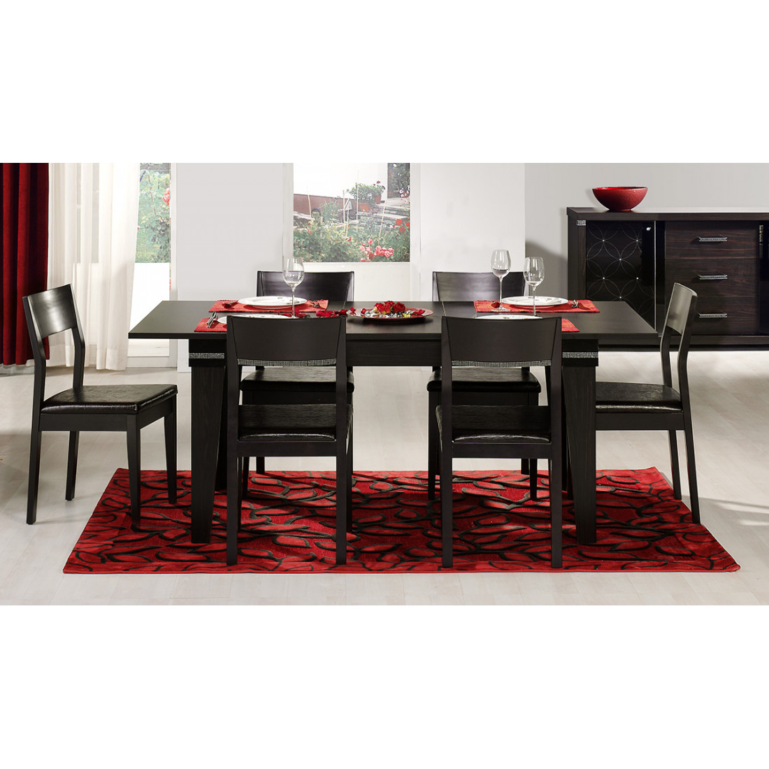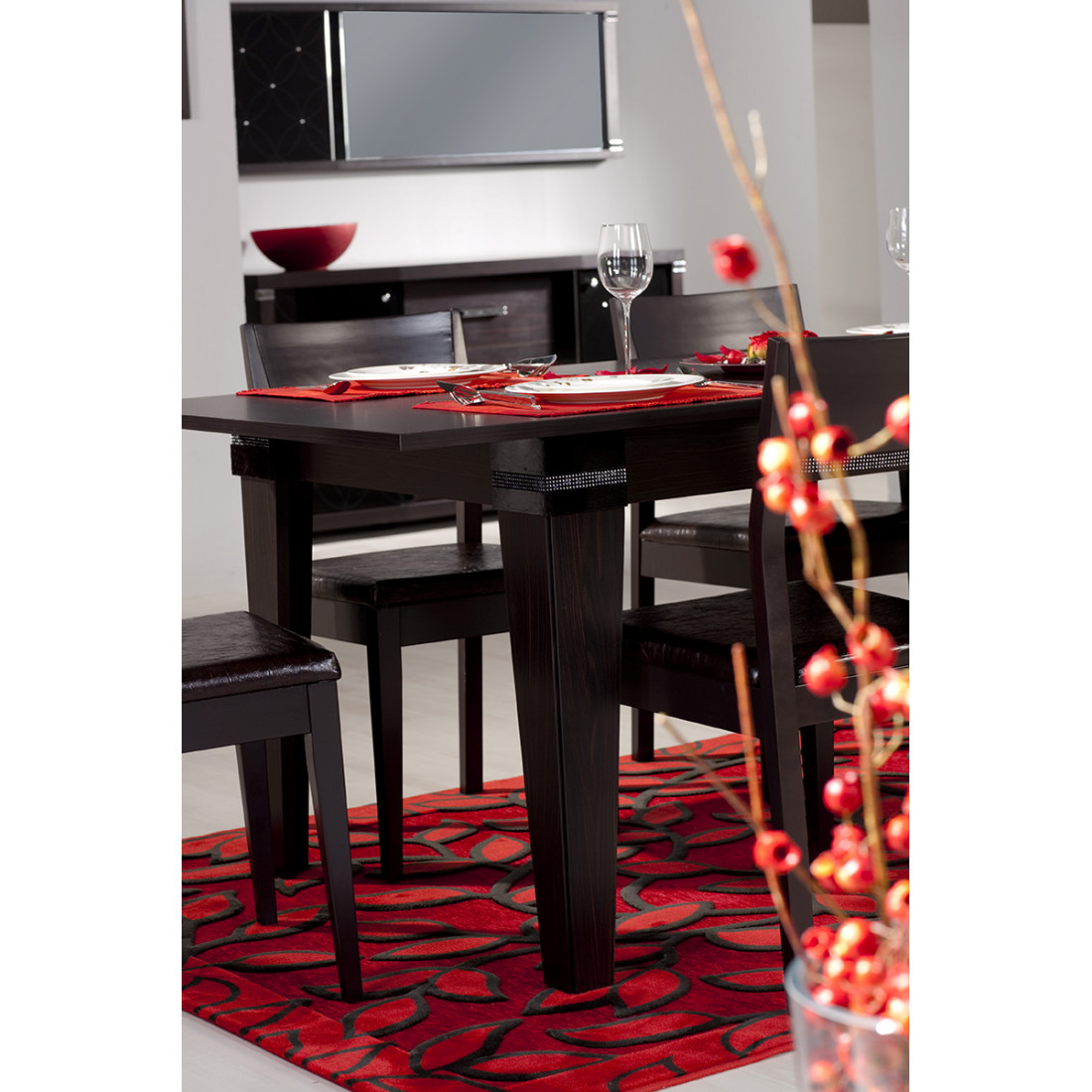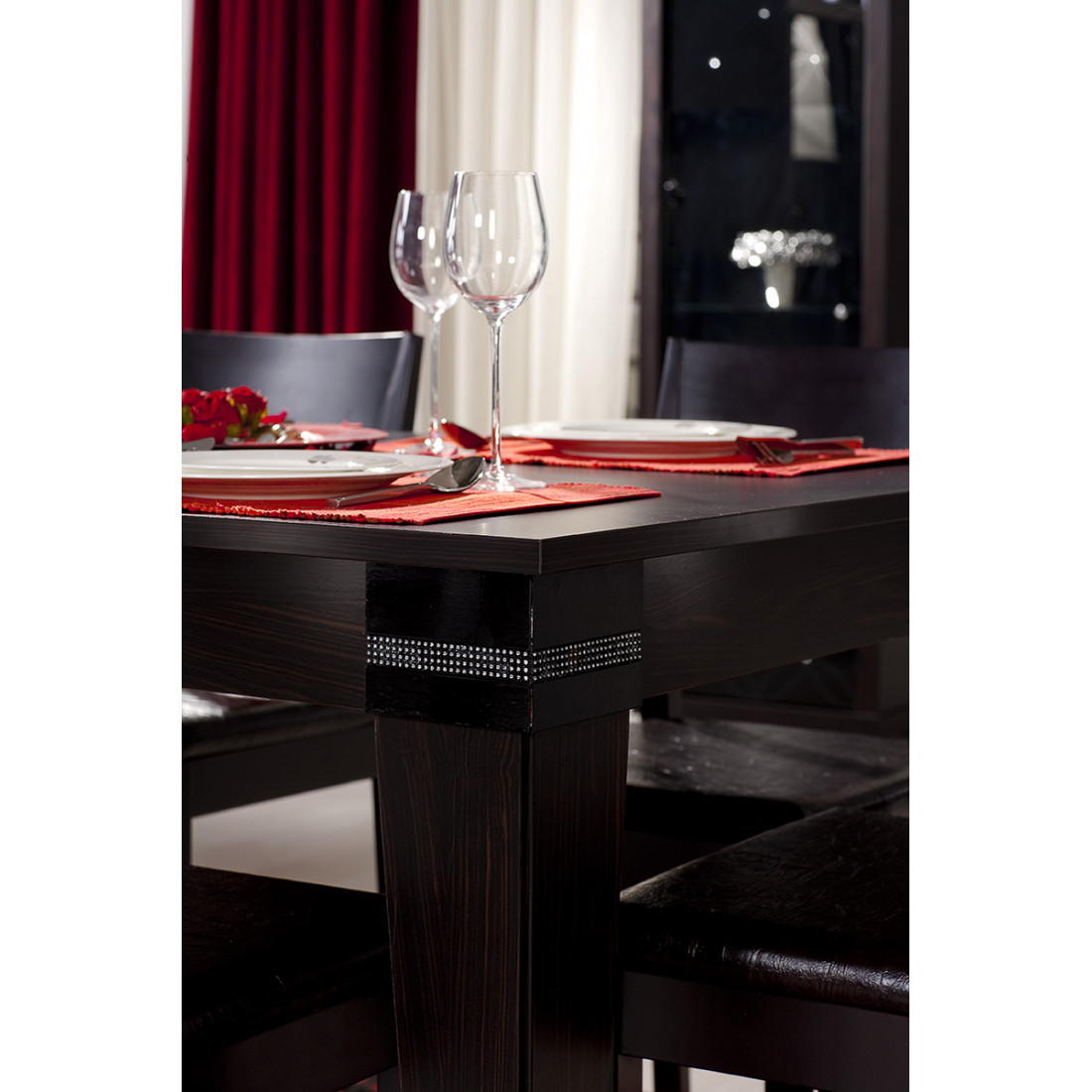 Раскладной обеденный стол MIRA-04 (венге) серии Мира от Беллона превосходно дополнит респектабельный и стильный интерьер гостиной, просторной столовой или кухни. Предельно прочная и устойчивая конструкция рассчитана на долгие годы эксплуатации. Габаритные размеры по столешнице могут с легкостью увеличиваться по длине, если требуется разместить большую компанию, чем из шести человек. Купить раскладной стол цвета венге стоит и за дизайнерское оформление: декоративные вставки из стразов создают ощущение роскоши и элегантности.