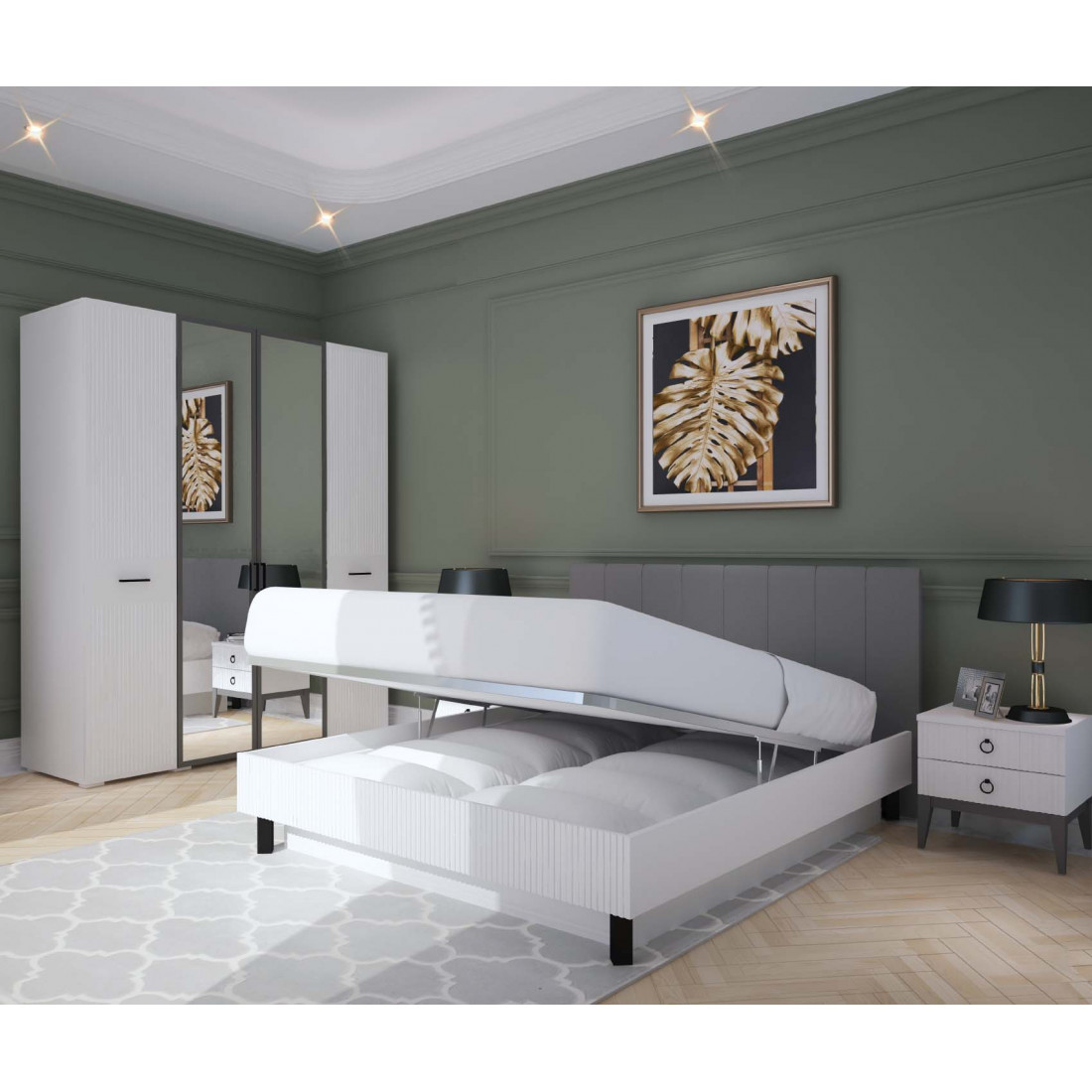 ПВХ цвета «Белый матовый»; -Ящики на выдвижных механизмах скрытого монтажа;