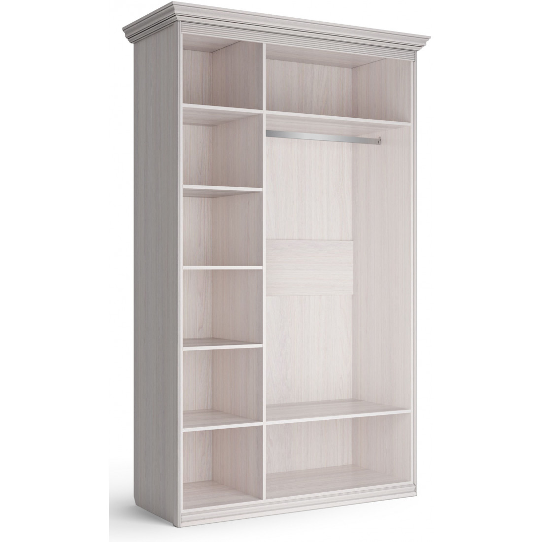 Шкаф 3-х дверный с глухой и зеркальной дверью Неаполь Ясень анкор светлый (патина "серебро")