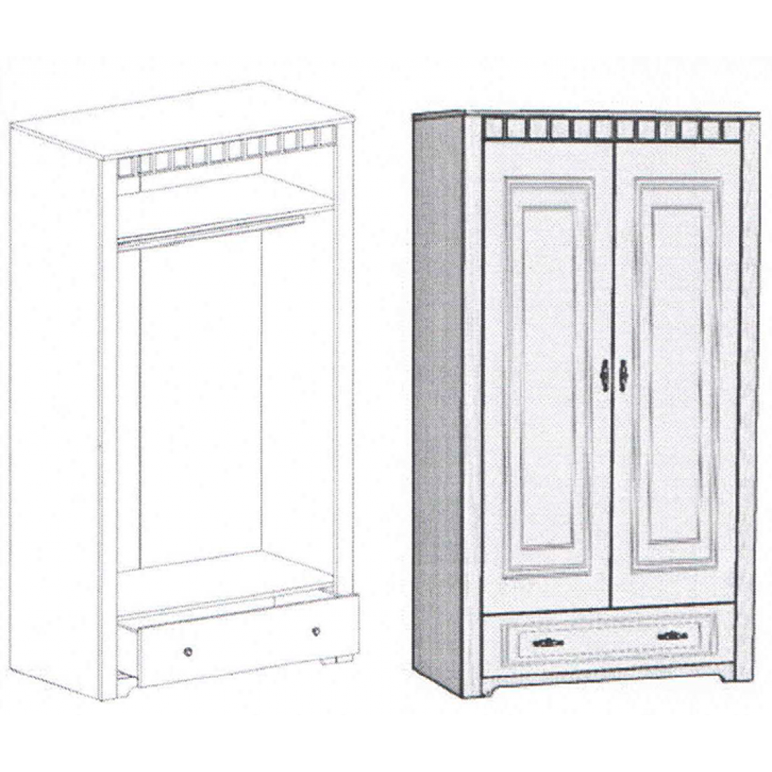 Шкаф двухдверный Прованс от Мебельград. Легкие ноты очарования сельской местности, простота линий и домашний уют - вот основные мотивы мебели этого стиля. Вместительное пространство для хранения объемных вещей - постельного белья, подушек, пледов и прочих необходимых принадлежностей.